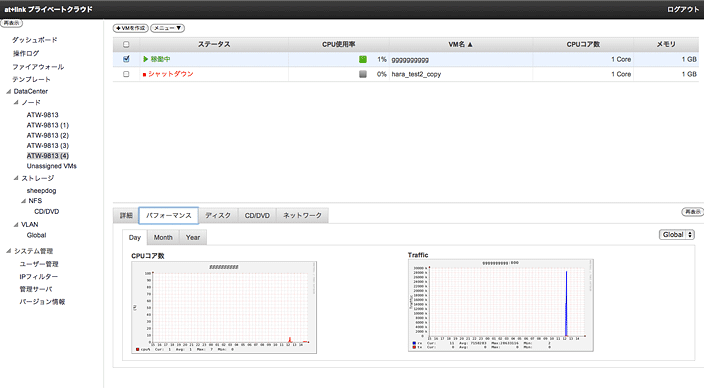 at+link プライベートクラウドの大きな特長の一つが専用コントロールパネルです。機器の追加やファイアウォールの設定、メンテナンスなどサーバやネットワークに関する操作のほとんどを、この専用コントロールパネル上で完結させることができます。